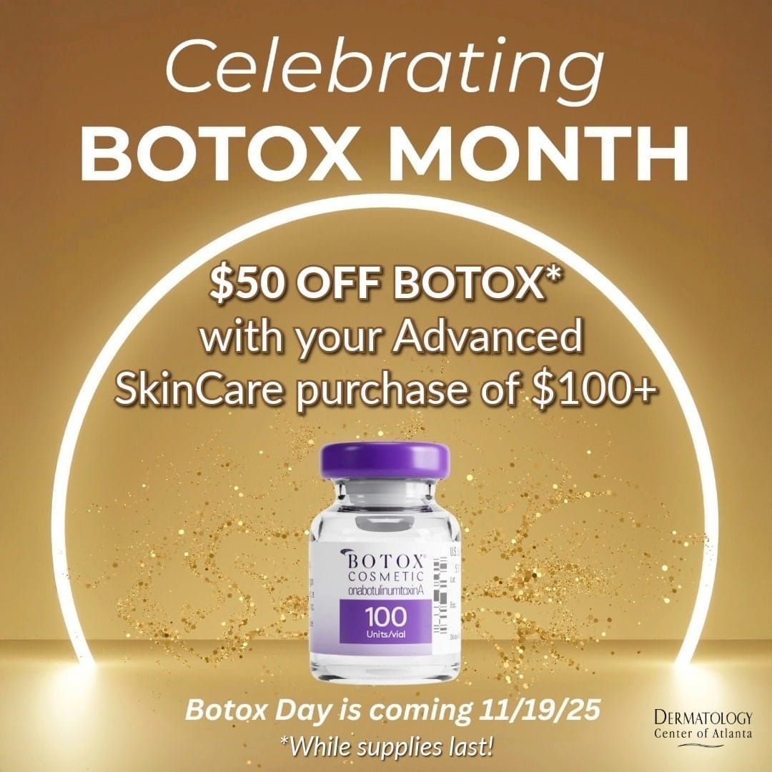 Specials Specials Be the first to know about special events and offers! Sign up for our monthly newsletter and become a Beauty Buzz Insider today. Subscribe $50 Off Botox Take $50 Off Your Botox Treatment When You Purchase $100 in Advanced SkinCare Products WHILE SUPPLIES LAST! CALL NOW TO SCHEDULE AND SAVE Botox Day is 11/19 BOGO Botox Gift Cards – 12pm on 11/19 botoxcosmeticday.com SkinPen + FREE SkinCare Free Gifts with SkinPen Microneedling CALL (770) 497 0699 to schedule